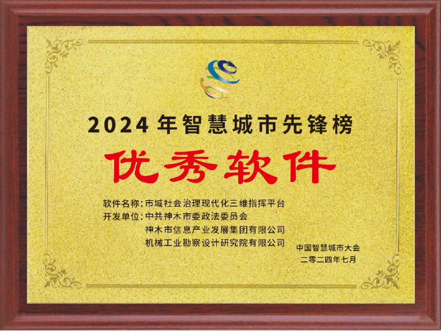 近日,第十七屆中國智慧城市大會發(fā)布了《2024智慧城市先鋒榜》,機勘院參與建設的“神木市市域社會綜合治理現(xiàn)代化信息平臺”“神木市市域社會治理現(xiàn)代化三維指揮平臺”分別榮獲中國智慧城市優(yōu)秀案例優(yōu)秀獎和中國智慧城市先鋒榜優(yōu)秀軟件獎。