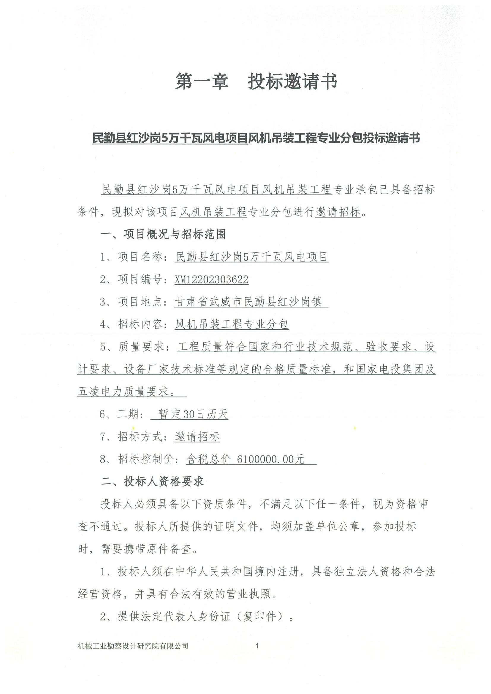 國(guó)家電投五凌電力民勤縣凌風(fēng)新能源有限公司民勤縣紅沙崗5萬千瓦集中式風(fēng)電項(xiàng)目招標(biāo)文件